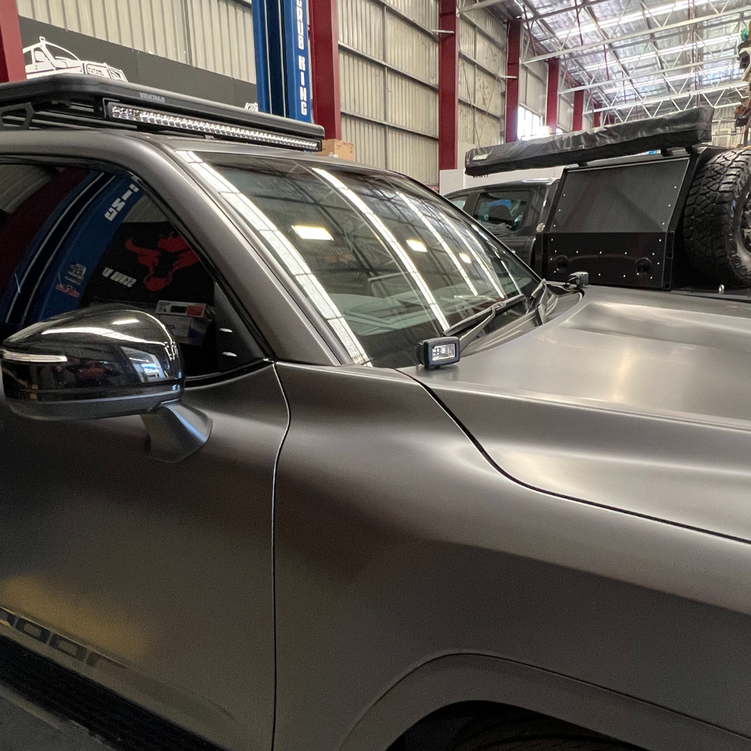 Ditch lights are a great addition to your 4X4. Ditch lights are mounted on the edge of bonnet of your 4X4, closest to the windshield. The LED ditch lights are typically a low-profile mount that allows you to mount a LED light cube or pod that doesn't obstruct your vision during driving.